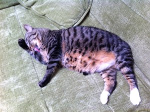 We didn’t stay angry, Bébert and me. It had been love at first sight anyway. My fiancé and me adopted him from the BARC Shelter in Williamsburg, a no-kill shelter where we occasionally volunteered as pet socializers. He was a birthday present for my fiancé who was eying a cute black feline. I happened to open the case of a huge tiger tomcat that immediately jumped onto my lap. When my fiancé sat down next to me, he stretched out his majestic body on both our laps. He was so smart, he knew he had us there and then.